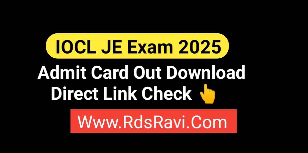 IOCL Junior Engineer 2025 Admit Card : IOCL Junior Engineer 2025 Admit Card will be Released on same day of release date, so you can visit rdsravi.com regularly for latest update, also Hall Ticket Download Link are given below.