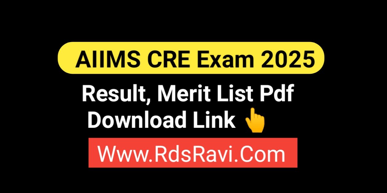 AIIMS CRE Merit List 2025 Pdf Download : AIIMS CRE Merit List 2025 will be declare on same day of Result release date, so you can visit rdsravi.com regularly for latest update, also Merit list Download Link are given below.