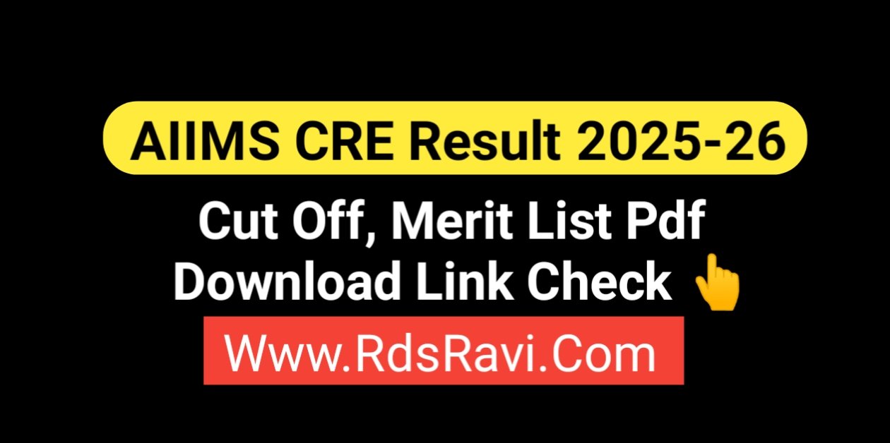 AIIMS CRE Merit List 2025-26 Pdf Download : AIIMS CRE Merit List 2025-26 will be declare on same day of Result release date, so you can visit rdsravi.com regularly for latest update, also Merit list Download Link are given below.