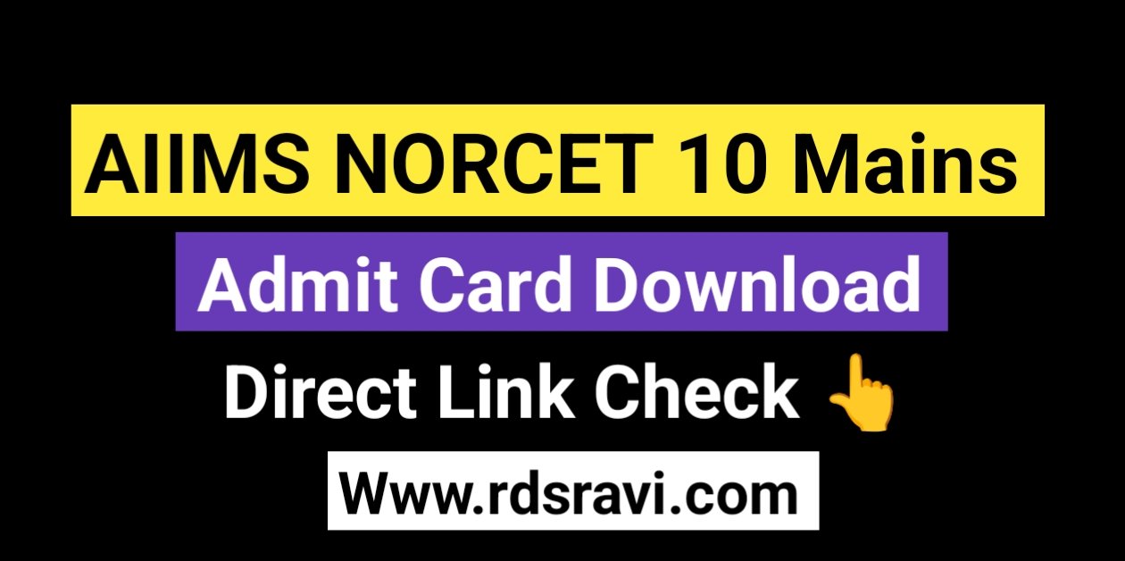 AIIMS NORCET 10 Mains (Stage ||) Admit Card 2026 Download : AIIMS NORCET 10 Mains (Stage ||) NORCET 2026 will be Release on same day of Admit card release date, so you can visit rdsravi.com regularly for latest update, also Admit Card Download Link are given below.