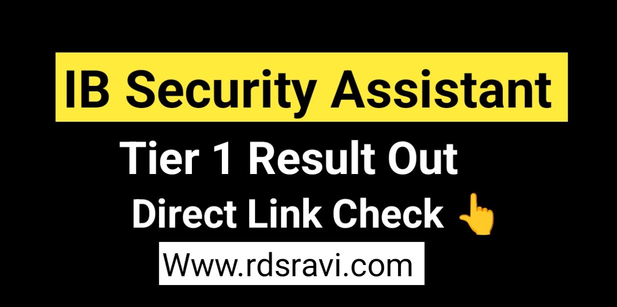 IB Security Assistant Tier 1 Exam 2025 Result : IB Security Assistant Tier 1 Exam 2025 Result will be declare on same day of release date, so you can visit rdsravi.com regularly for latest update, also Result Download Link are given below.