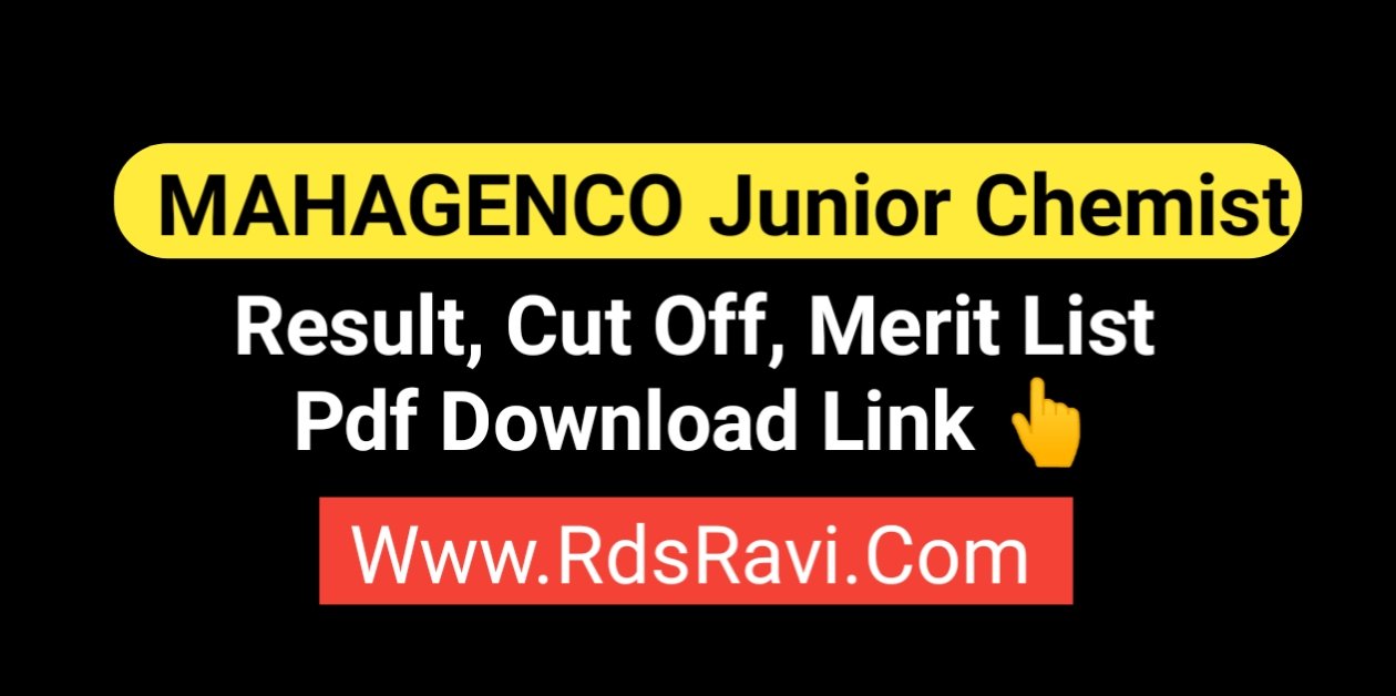 MAHAGENCO Junior Chemist Result 2025 Merit List Pdf : MAHAGENCO Junior Chemist Result 2025 Merit List Pdf will be declare on same day of Response Sheet Release date, so you can visit rdsravi.com regularly for latest update, also Result Download Link are given below.
